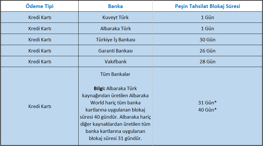 - Albaraka Türk, Kuveyt Türk, İş Bankası, Garanti Bankası ve Vakıfbank kartları kendi poslarına yönlendirilmektedir.